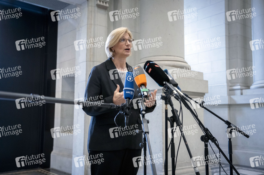 Anke Rehlinger beim Pressestatement am Rande der 1056. Sitzung des Bundesrates im Plenarsaal des Preußischen Herrenhauses. Berlin, 11.07.2025