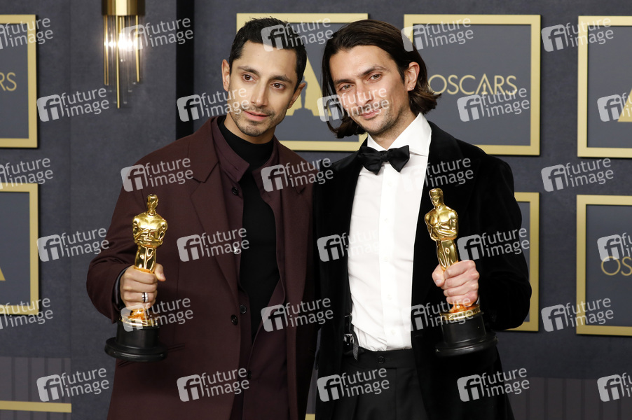 Riz Ahmed und Aneil Karia mit den Oscars für den besten Kurzfilm 'The Long Goodbye' im Press Room der Oscar Verleihung 2022 / 94th Annual Academy Awards im Hollywood & Highland Center. Los Angeles, 27.03.2022