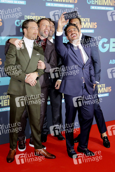 Frederick Lau, Wotan Wilke Möhring, Bora Dagtekin, Elyas M'Barek und Florian David Fitz bei der Premiere des Kinofims 'Das perfekte Geheimnis' im Mathäser Filmpalast. München, 21.10.2019