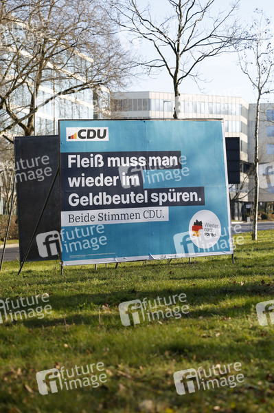Logo, Partei, Partei-Symbol, Parteien, Parteienwerbung, Parteilogo, Plakat, Plakatkampagne, Plakatständer, Politik, Politiker, Politikerinnen, Protestwähler, Slogan, Stammwähler, Wahl, Wahlbeeinflussung, Wahlbeteiligung, Wählen, Wählerschicht, Wählerschichten, Wahlkampagne, Wahlkampf, Wahlkampfmodus, Wahlkandidat, Wahlprogramm, Wahltermin, Wahlwerbung, Wirkung, Wirkungsmacht, Christlich Demokratische Union Deutschlands, CDU, Symbolbild, Symbolfoto, Themenbild, Themenfoto
