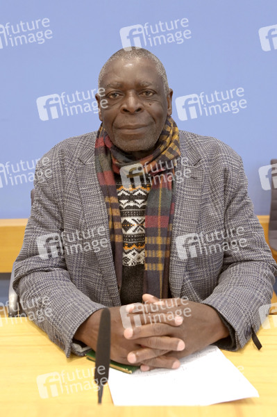 David Macou bei der Bundespressekonferenz zum Schicksal der ehemaligen DDR-Vertragsarbeiter aus Mosambik und ihre Entschädigungsforderungen im Haus der Bundespressekonferenz. Berlin, 30.09.2024