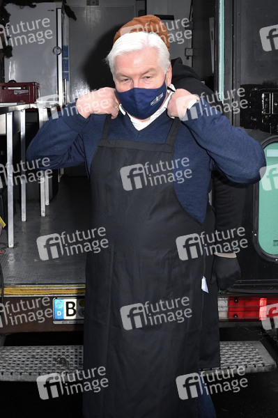 Bundespräsident Frank-Walter Steinmeier verteilt Essen und Geschenke aus dem Food Truck an Obdachlose und Bedürftige. Berlin, 16.12.2020