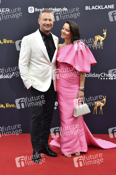 Sasha mit Ehefrau Julia Röntgen bei der 76. Bambi-Verleihung 2024 in den Bavaria Filmstudios. München, 07.11.2024