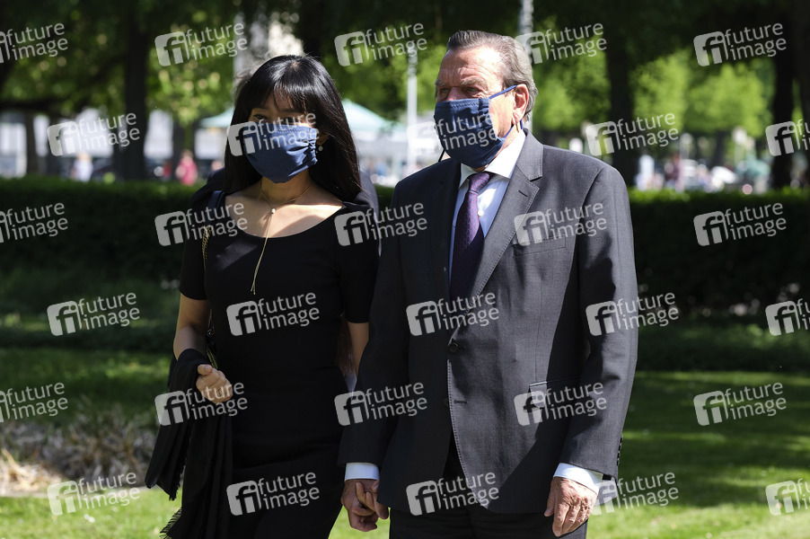 Gerhard Schröder mit Ehefrau Schröder-Kim So-yeon bei der Gedenkfeier zum Tag der Befreiung - 75. Jahrestag der Kapitulation des Nationalsozialistischen Deutschlands auf dem Ehrenfriedhof am Maschsee-Nordufer. Hannover, 08.05.2020