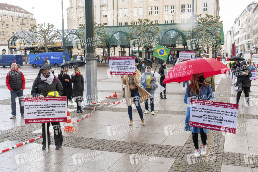 Demonstration der Beautybranche und Tattoostudios vor dem Rathaus für die Erlaubnis der Wiedereröffnung ihrer Geschäfte. Hamburg, 12.05.2020