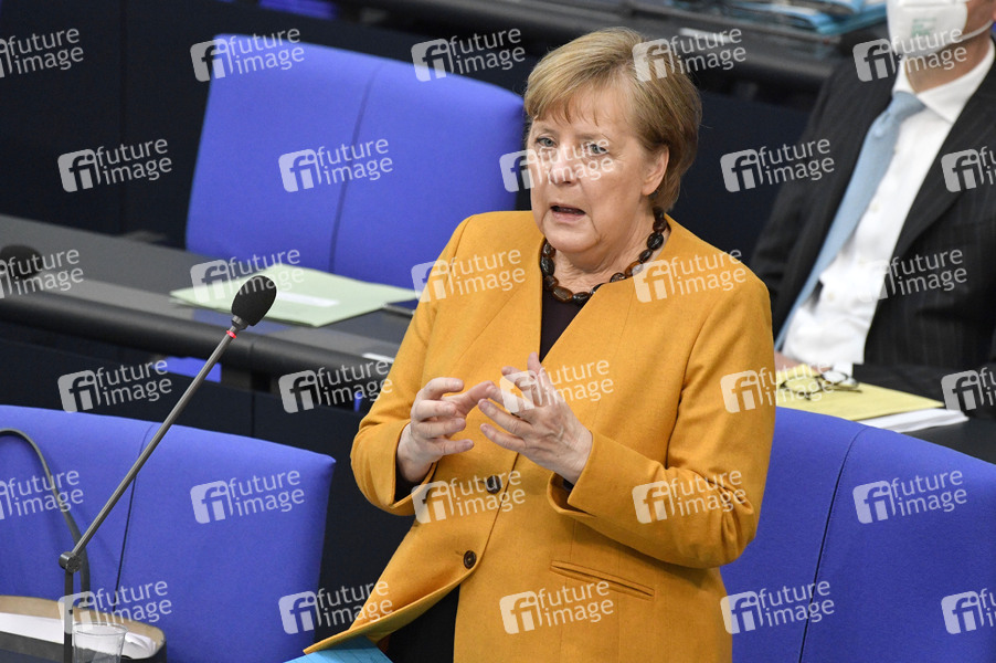 Angela Merkel in der 217. Sitzung des Deutschen Bundestages im Reichstagsgebäude. Berlin, 24.03.2021
