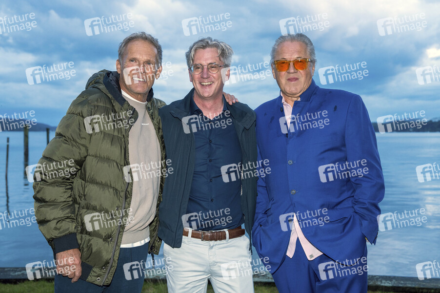 Christian Tramitz, Matthias Helwig und Michael Brandner bei der Premiere von zwei neuen Folgen der ARD-Vorabendserie 'Hubert ohne Staller' auf dem Open Air Starnberg 2025 im Open Air Kino im Seebad. Starnberg, 05.08.2025