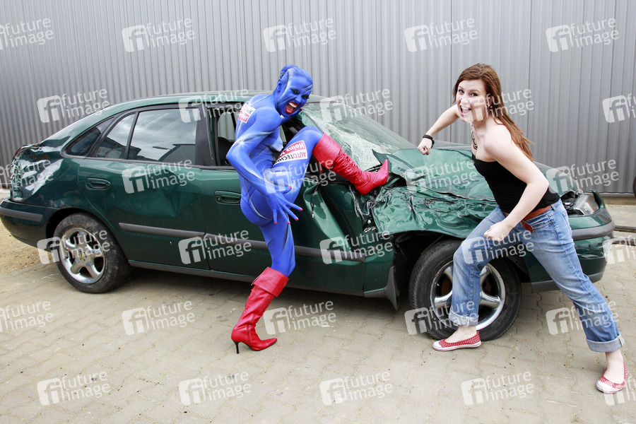 Werbefotos mit Model Caro für die Firma Autotechnik Heinz Müller in Elsdorf im Auftrag der Zoom Werbeagentur Bergheim. Bodypaint Künstler: Jörg Düsterwald