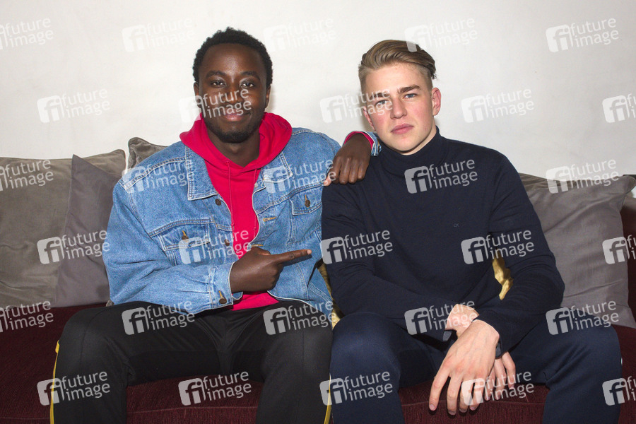 Jakob Ude und Jonny Mahoro (Jonny & Jakob) vor dem Auftaktkonzert zur ihrer 'Notfallnummer'-Tour 2019 im Prachtwerk. Berlin, 13.10.2019