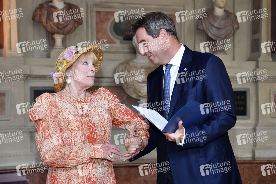 Elke Sommer und Markus Söder bei der Verleihung des Bayerischen Verdienstordens 2019 im Antiquarium der Münchner Residenz. München, 22.07.2019