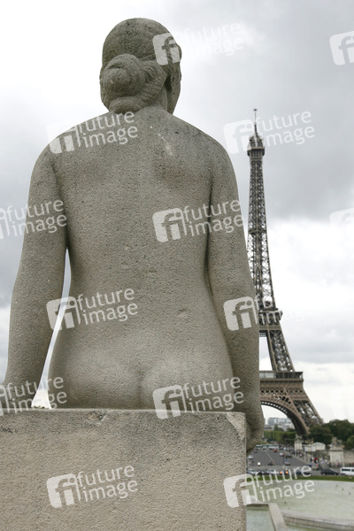 Skulptur in den Jardins du Trocadero vor dem Eiffelturm / Tour Eiffel