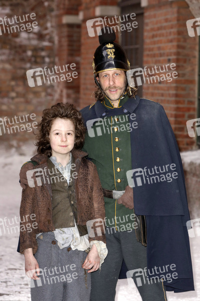 Maximilian Ehrenreich und Oliver Korittke beim Fototermin am Set des Fernsehfilms 'Das Mädchen mit den Schwefelhölzern' aus der ARD-Märchenreihe 'Sechs auf einen Streich' in der Zitadelle Spandau. Berlin, 18.03.2013
