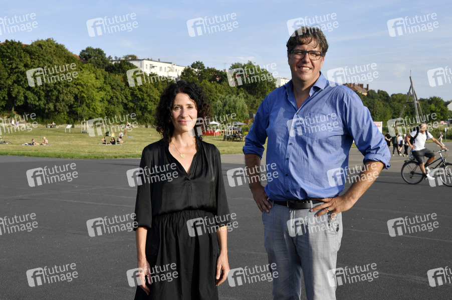 Bettina Jarrasch und Michael Kellner beim Start der Briefwahlkampagne von Bündnis 90/Die Grünen auf dem Tempelhofer Feld. Berlin, 15.08.2021