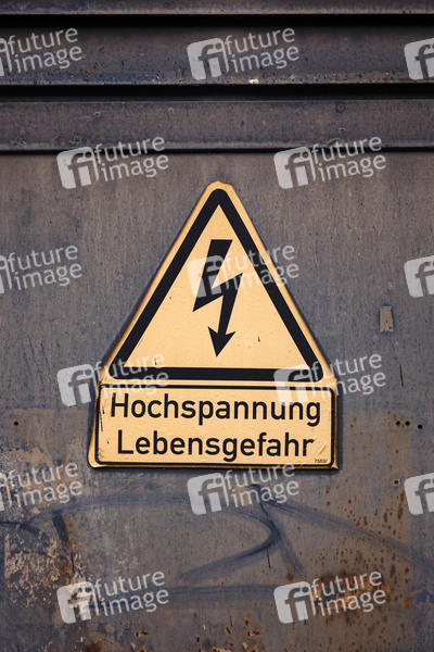 Ein Warnhinweis 'Hochspannung Lebensgefahr' an einem Stromkasten. Köln, 11.07.2020