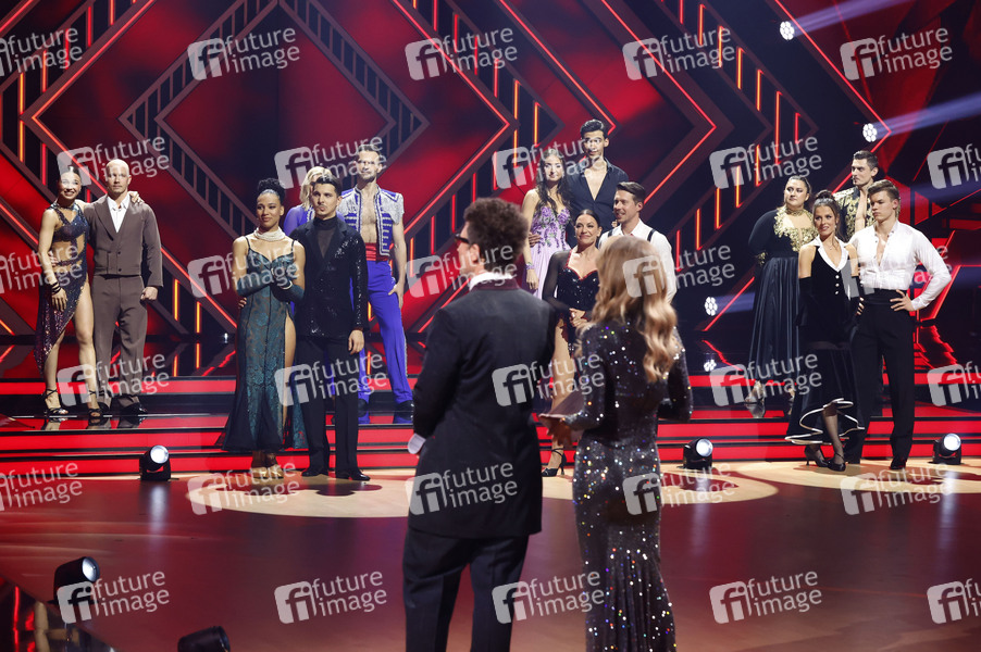 Daniel Hartwich und Victoria Swarovski mit den Tänzerinnen und Tänzern in der achten Live-Show der 18. Staffel der RTL-Tanzshow 'Let's Dance' im MMC Coloneum. Köln, 25.04.2025