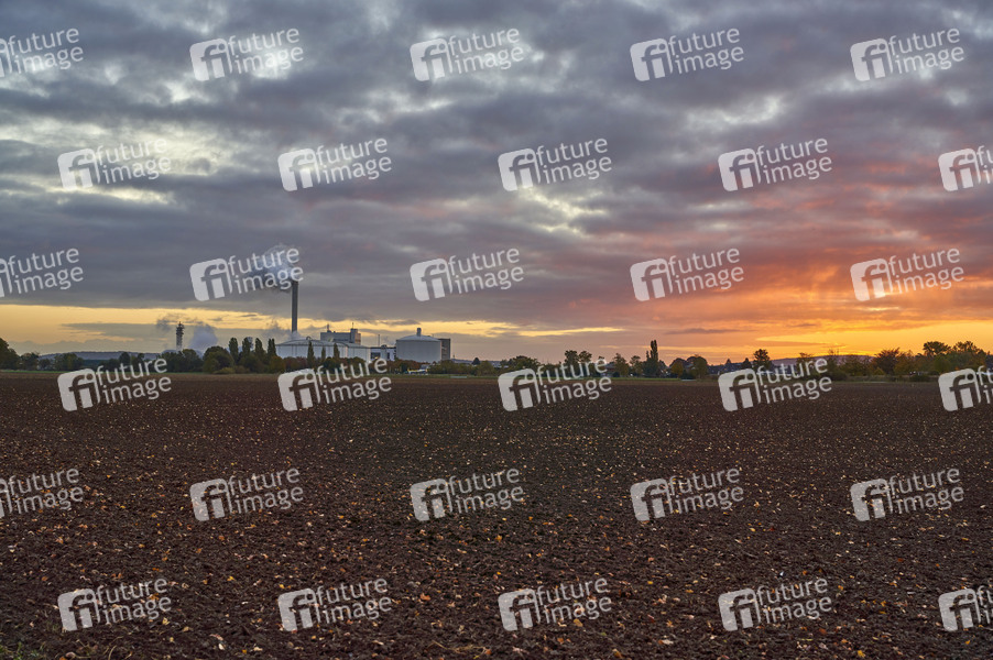 Frabrik, Zuckerproduktion, Zucker, Raffinade, Puderzucker, Kristallzucker, Zuckerrüben, Zuckerrübe, Zuckerfabrikation, Morgenrot, Sonnenaufgang, Morgenstimmung, Symbolfo, Symbolbild