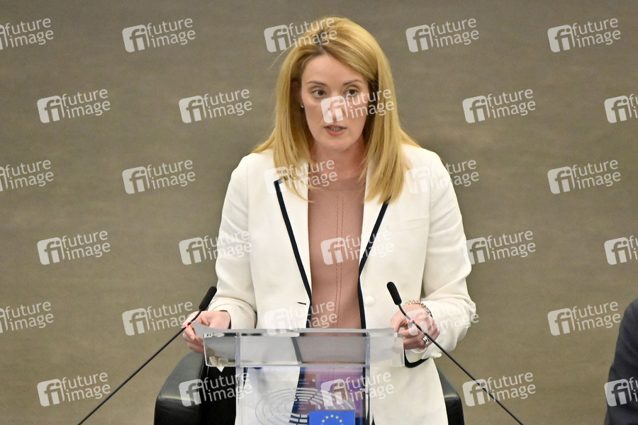 Parlamentspräsidentin Roberta Metsola bei einer Plenartagung im Plenarsaal des Europäischen Parlaments. Straßburg, 04.04.2022