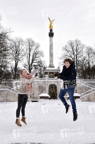 Stephanie Liebl und Julian Wittmann beim Winterspaziergang in den Parkanlagen beim Friedensengel und an der Isar. München, 27.01.2021
