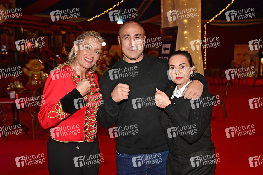 Jana Zobel, Arthur Abraham und Katharina Köllner bei der Premiere des 27. Dresdner Weihnachts-Circus an der Washingtonstraße. Dresden, 13.12.2024