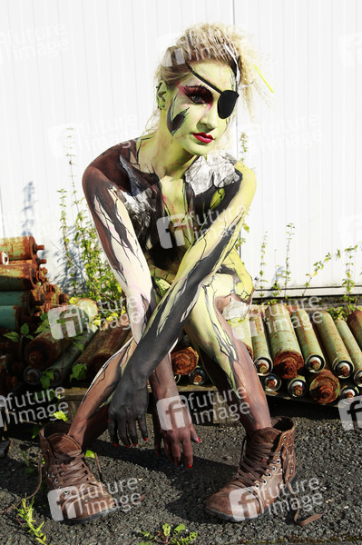 Bodypainting, Erotik, Frau, Mädchen, nackt, draußen, weiblich, Körperkunst, Kunst, Malerei, Augenklappe, erotic, woman, girl, nude, outdoor, female, body art, body painting, eyepatch