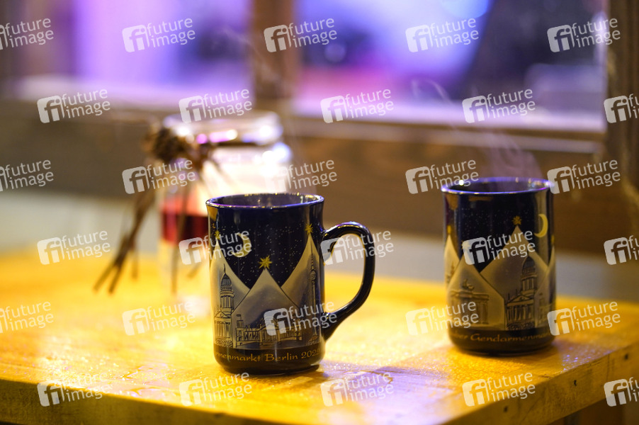 Glühweintassen - Der Weihnachtszauber am Gendarmenmarkt findet aufgrund von Bauarbeiten in den Jahren 2022-2024 am Bebelsplatz an der Staatsoper statt. Berlin, 26.11.2022