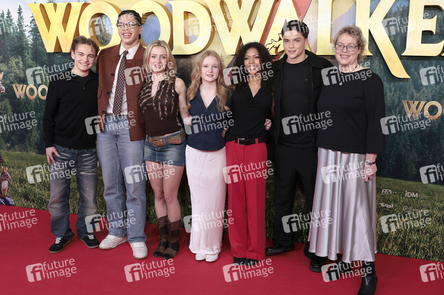 Emil Bloch, Johan von Ehrlich, Lara Amelie Rosa, Lilli Falk, Sophie Lelenta, Emile Cherif und Katja Brandis bei der Premiere des Kinofilms 'Woodwalkers 2' im Cinedom. Köln, 17.01.2026