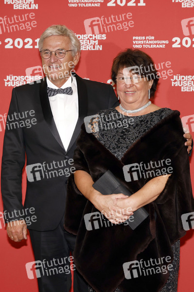Peter Frey mit Ehefrau Sabine Frey bei der Verleihung des 'Preises für Verständigung und Toleranz' im Glashof des Jüdischen Museums. Berlin, 13.11.2021