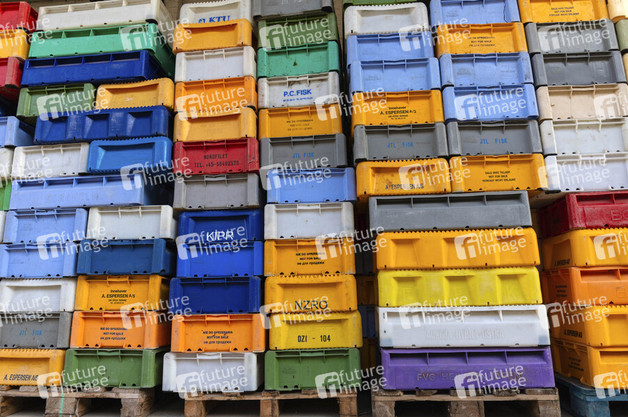 Fischerei, Finschfang, Ostseefischerei, Fischereigenossenschaften, Fischereigewerbe, Fischwirtschaft, Fischverarbeitung, Fischlagerung, Fischmarkt, Fischtransport, Fischfabrik, Rügen, Transportkisten, Kunststoffkisten