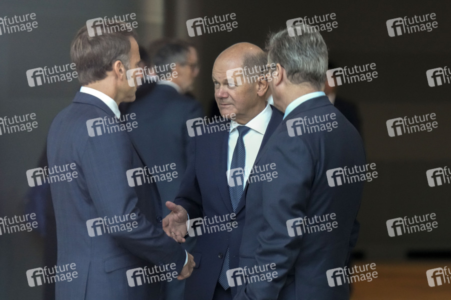 Emmanuel Macron, Olaf Scholz und Keir Starmer beim QUAD Treffen im Bundeskanzleramt. Berlin, 18.10.2024