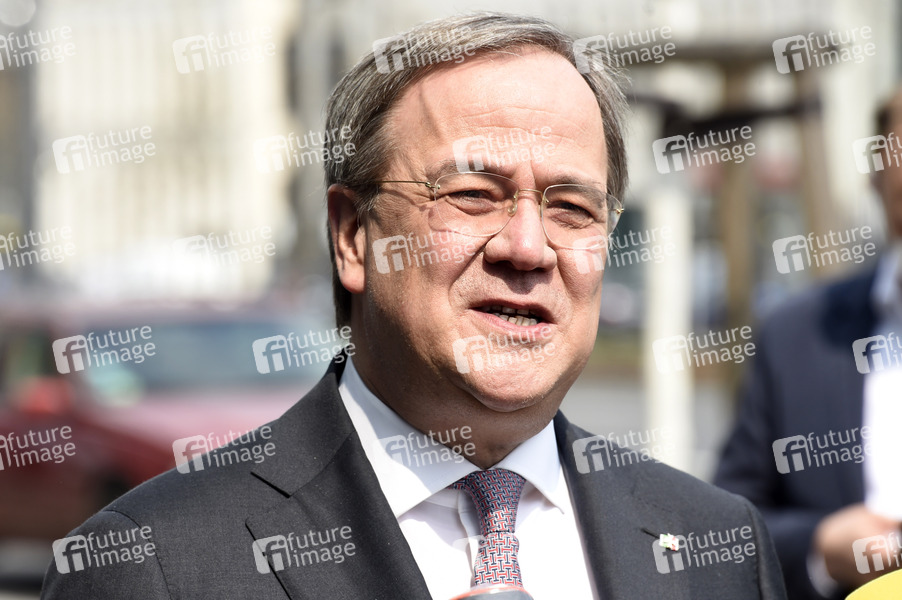 Armin Laschet bei einem Pressestatement zur Kanzlerkandidatur von Annalena Baerbock vor dem Konrad-Adenauer-Haus. Berlin, 19.04.2021