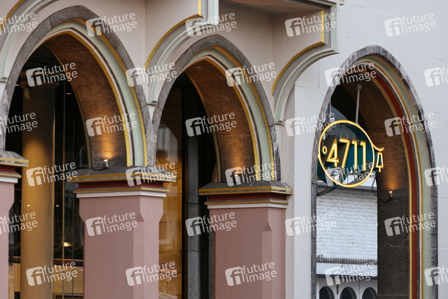 4711-Logo, 4711-Werbung, Stammhaus, Kölnisch Wasser, Eau de Cologne, Eau de Toilette, Eau de Parfum, Duftwasser, Acqua Colonia, Siebenundvierzig-Elf, Kultmarke, Kultduft, Luxusgüter, Duftmarke, Souvenir, Parfum, Parfüm, Hausnummer 4711, Tourismus, Kölntourismus, aqua mirabilis, Kopfnote, Herznote, Basisnote, Bergamotte, Rosmarin, Lavendel, Neroli, Denkmalschutz, Duftexpertise, Kölner Duftwasser, Duftklassiker, Duft-Imperium, Fortyseveneleven, fortyseven-eleven, Duftkomposition, 4711 Remix Cologne, Exportschlager, Echt Kölnisch Wasser, Molanusflasche, Damenduft, Herrenduft, Mäurer & Wirtz, Duftwelt, klassischer Duft, Sightseeing, Außenwerbung, 4711-Flasche, Kultparfum, Symbolbild, Symbolfoto