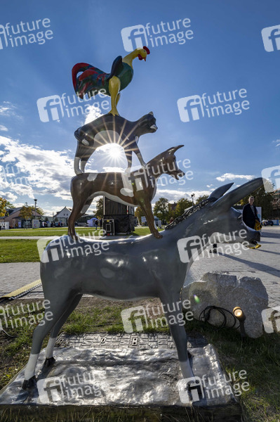 Die Bremer Stadtmusikanten am Stand von Bremen auf dem Petersberg bei dem Vorbereitungen zum Tag der Deutschen Einheit unter dem Motto 'Zusammen wachsen'. Erfurt, 30.09.2022