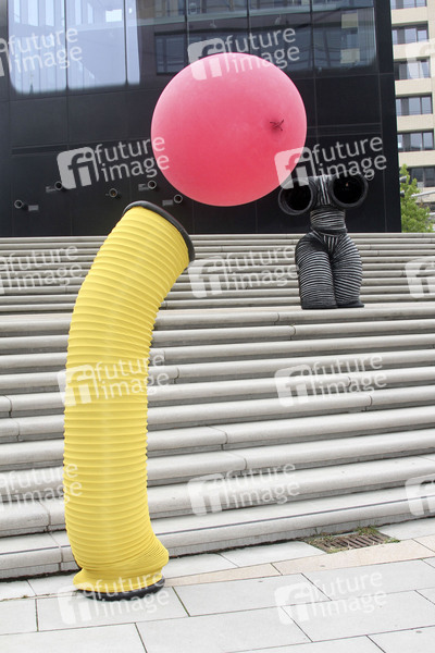Mitglieder des Maskentheater-Ensembles 'Mummenschanz' in der Hafencity, Hamburg