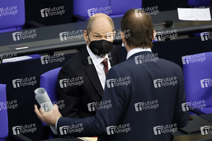 Olaf Scholz in der 209. Sitzung des Deutschen Bundestages im Reichstagsgebäude. Berlin, 11.02.2021