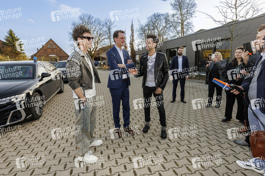Chris Ehrlich, Hendrik Wüst und Andreas Ehrlich beim Besuch des NRW-Ministerpräsidenten am Firmensitz der Ehrlich Entertainment GmbH & Co. KG mit dem international erfolgreichen Künstler-Duo Ehrlich Brothers. NRW-Ministerpräsident Hendrik Wüst nimmt eine Reihe von Terminen in Ostwestfalen-Lippe wahr. In Gesprächen und Begegnungen vor Ort will er sich einen Eindruck von aktuellen Projekten und Herausforderungen in der Region verschaffen. Dabei stehen Impulse aus Wissenschaft und Forschung, Einblicke in innovative Praxis und Unternehmenskultur sowie Begegnungen mit kreativen Persönlichkeiten im Mittelpunkt. Bünde, 26.02.2026