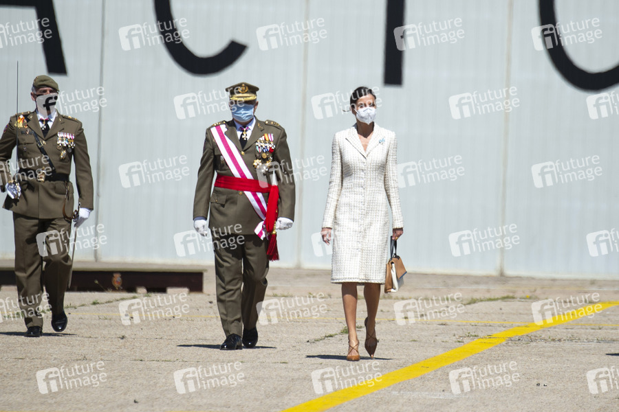Königin Letizia von Spanien bei der Zeremonie der Übergabe der Nationalflagge an die ACAVIET (Luftfahrtakademie der Armee) in der Helipuerto Base Coronel Mate. Colmenar Viejo, 07.05.2021