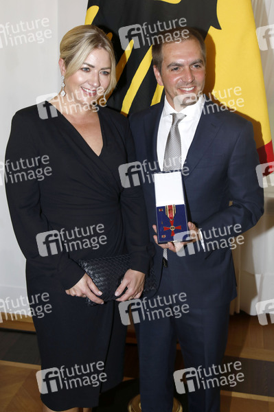 Philipp Lahm mit Ehefrau Claudia Lahm bei der Verleihung des Verdienstkreuzes am Bande der Bundesrepublik Deutschland an Philipp Lahm im Schloss Bellevue. Berlin, 01.10.2025