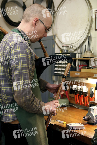 Aussterbende Zunft, Werkstatt, Instrumentenbau, Dudelsack, Sackpfeife, Holzblasinstrument, Sessionprotz, Schäferpfeife, Spielpfeife, Säckpipa, Säckpipor, Dudelsackmanufaktur, Handwerk, Werkzeuge, Werkzeuge, Herstellung, Hersteller, Innung, Zunft, Zünfte, Handwerkskunst, Handarbeit, Musik, Musikinstrument, Pfeife, Pfeifen, Kunsthandwerk, Symbolfoto, Symbolbild