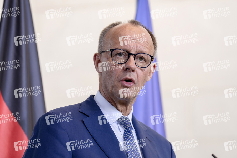 Friedrich Merz beim Empfang des Ministerpräsidenten von Griechenland mit militärischen Ehren und zu einem gemeinsamen Gespräch mit anschließendem Pressestatement im Bundeskanzleramt. Berlin, 13.05.2025