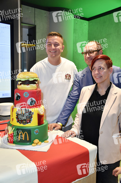 Aaron Troschke, Oliver Mix und Melanie Paepke beim Grand Opening des McDonald's Restaurants East Side Store in der East Side Mall. Berlin, 19.09.2024
