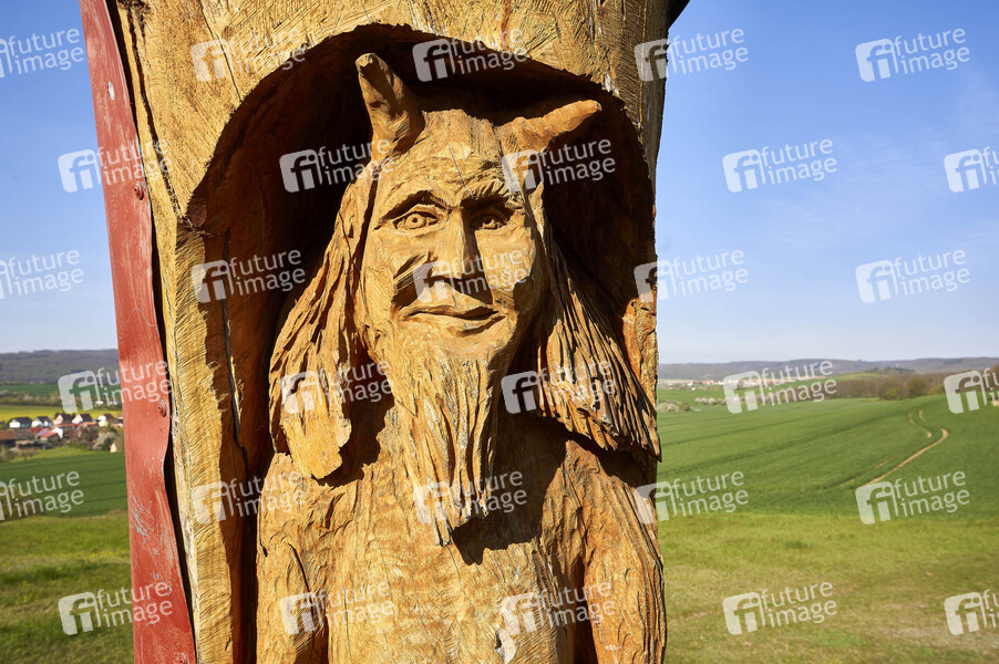 Teufelsstatue nahe dem Hamburger Wappen an der Felsformation Teufelsmauer. Timmenrode, 08.05.2021