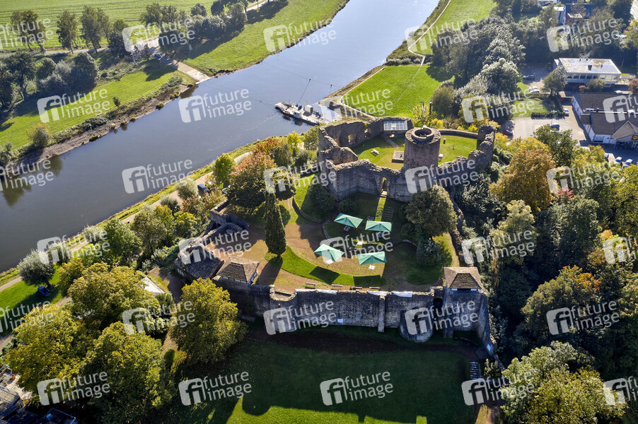 Eversteiner Burg, Sehenswürdigkeit an der Weser, Ruine, Höhenburg, Luftaufnahme, Tourismus, erste Erwähnung 1285