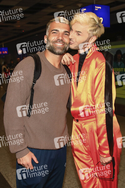 Rafi Rachek und Sam Dylan bei der Rückkehr der Dschungelcamp-Kandidaten der RTL Reality-TV-Show 'Ich bin ein Star - holt mich hier raus' aus Australien auf dem Flughafen Frankfurt am Main. Frankfurt, 12.02.2025