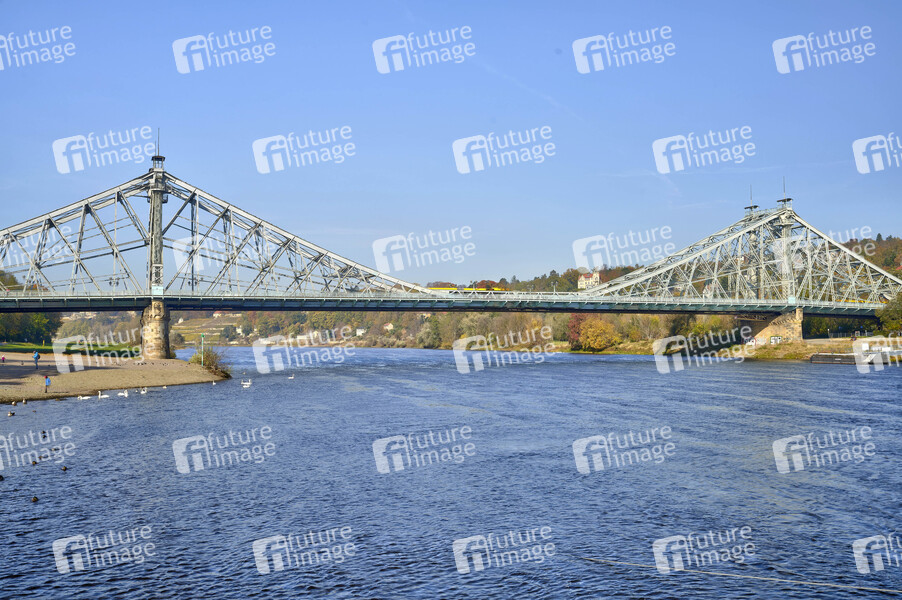 Blaues Wunder ist der inoffizielle Name der Loschwitzer Brücke, eine der in Dresden über die Elbe führenden Brücken. Sie verbindet die Stadtteile Blasewitz am linken und Loschwitz am rechten Ufer miteinander. Dresden, 30.10.2021
