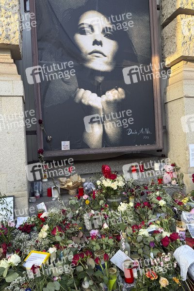 Blumen, Kerzen und Fotos sind an einem Gedenkort für die verstorbene Rosenstolz-Sängerin AnNa R. am Theater des Westens zu sehen. Die Sängerin wurde 55 Jahre alt. Berlin, 22.03.2025