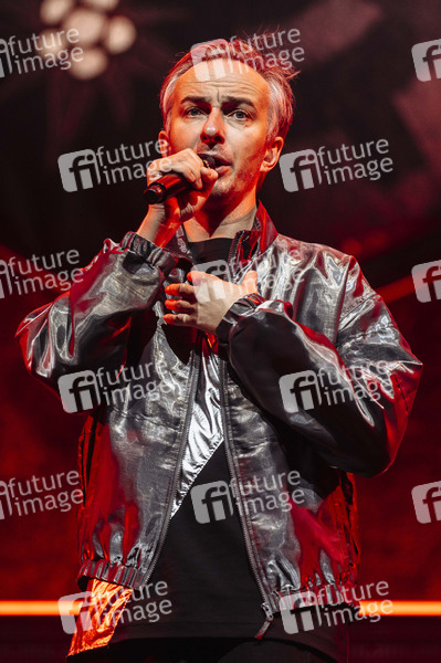 Jan Böhmermann und das Rundfunk-Tanzorchester Ehrenfeld live bei einem Konzert der 'Eisern Ehrenfeld'-Tour in der Messehalle. Erfurt, 15.01.2025