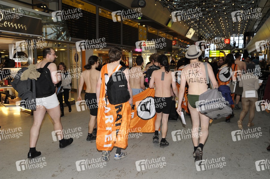 Mitglieder der Piratenpartei entern den Flughafen Tegel in Berlin und zeigen ihr Programm