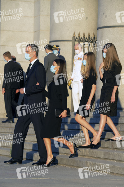 König Felipe VI. von Spanien, Königin Letizia von Spanien, Prinzessin Leonor von Spanien und Prinzessin Sofia von Spanien bei einer Gedenkmesse für die Opfer des Coronavirus COVI-19 in der Almudena-Kathedrale. Madrid, 06.07.2020