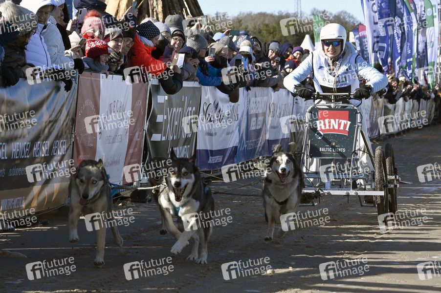 Sanna Englund beim Baltic Lights 2023 Charity-Hunderennen zu Gunsten der Welthungerhilfe zwischen der Seebrücke Ahlbeck und der Seebrücke Heringsdorf. Heringsdorf, 04.03.2023