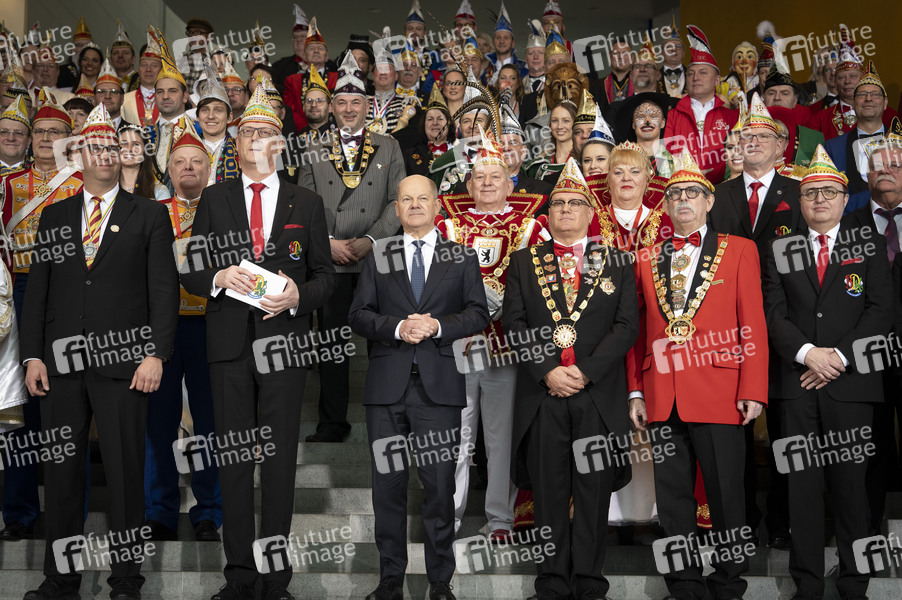 Olaf Scholz und Klaus-Ludwig Fess beim Empfang von Karnevalisten im Bundeskanzleramt. Berlin, 05.02.2025